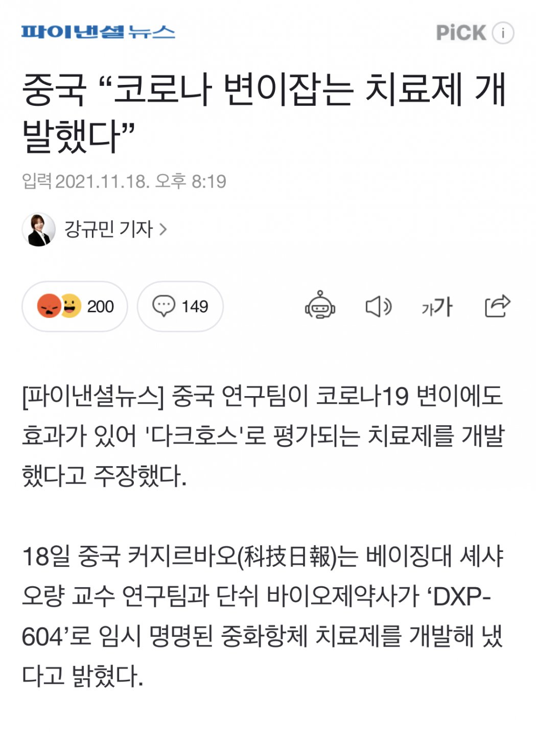 차이나는 코로나 치료제 개발