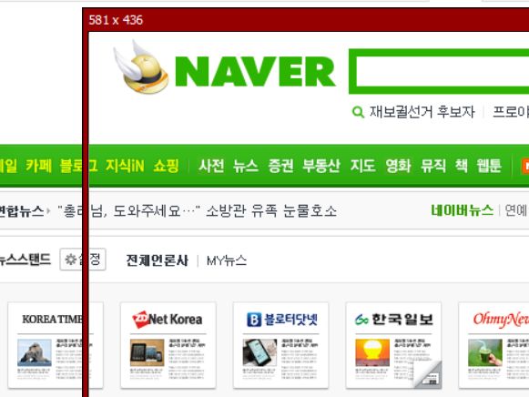 이번에 윈도 8.1을 깔고 영역지정 화면캡쳐를 시도하면 사진과 같이 캡쳐가 되네요..
