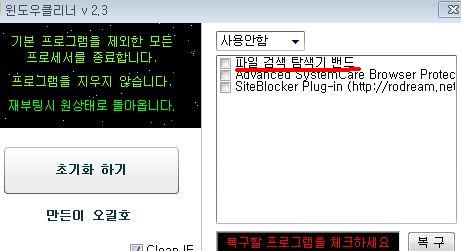 CleanIE 에서 체크 해제 후 초기화 하신 후에 문제가 생길 경우 다시 체크 하시면 원래대로 복구가 됩니다.