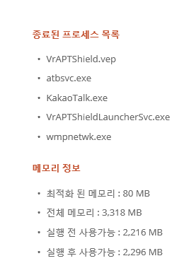 다른 악성 프로그램들이 이렇게 종료된 것 처럼 보이나 실제로는그렇지 않은가 하는 노파심에서 문의를 드립니다.