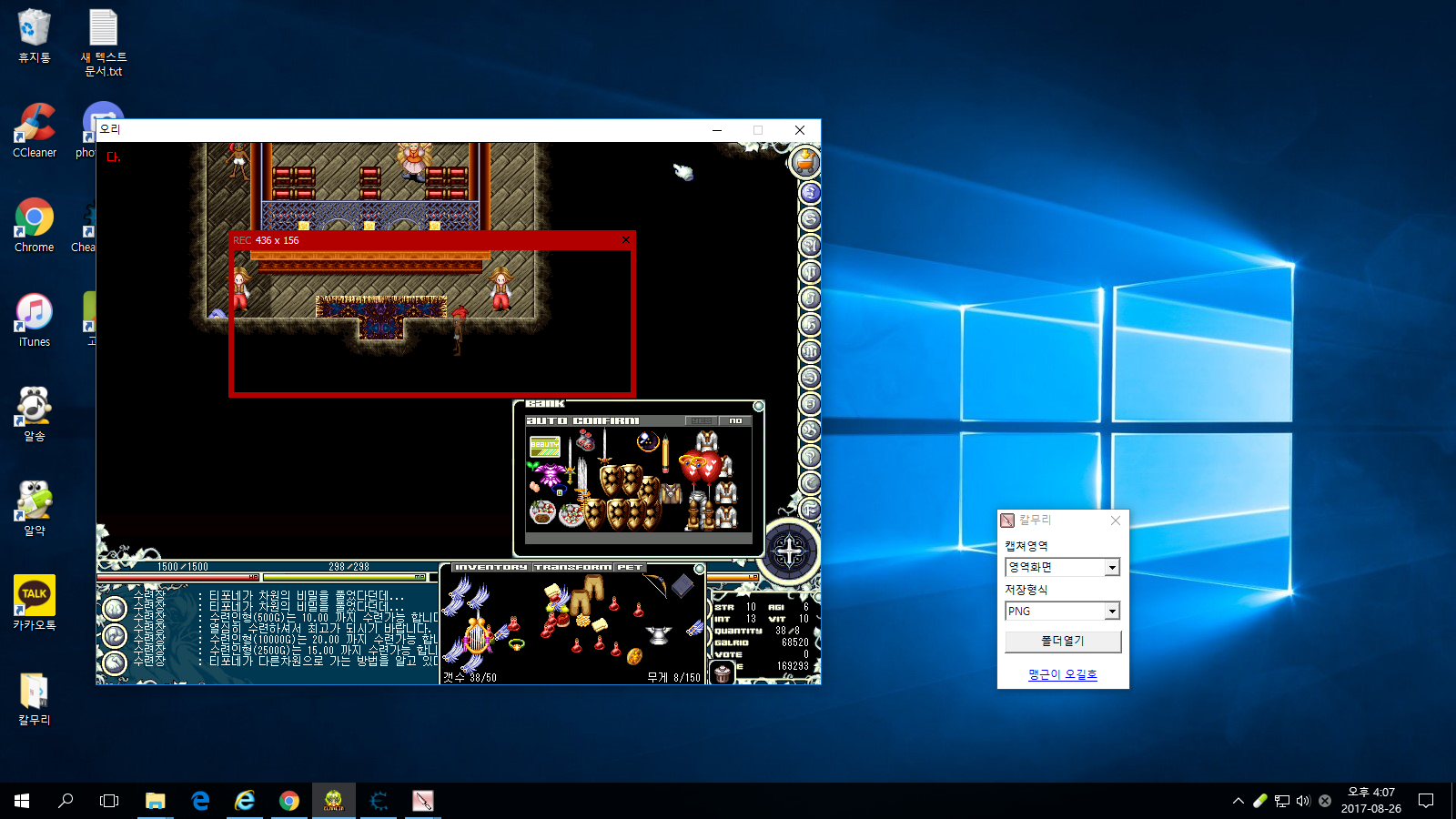제가 게임 스크린샷을 칼무리로 찍는데요.