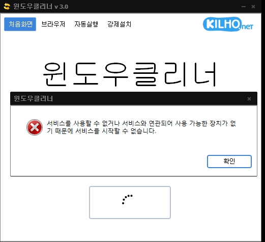윈도우 클리너 사용시 오류메세지가 나옵니다.