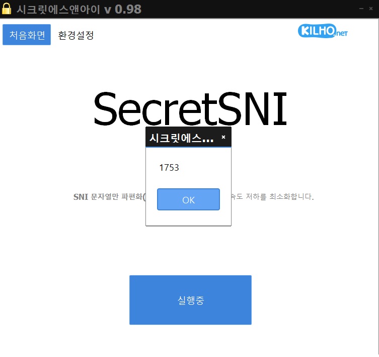 시크릿SNI 실행하면 첨부한 파일처럼 뜨는데요...