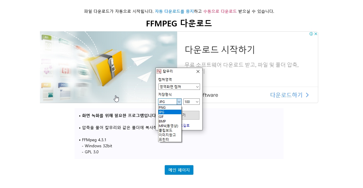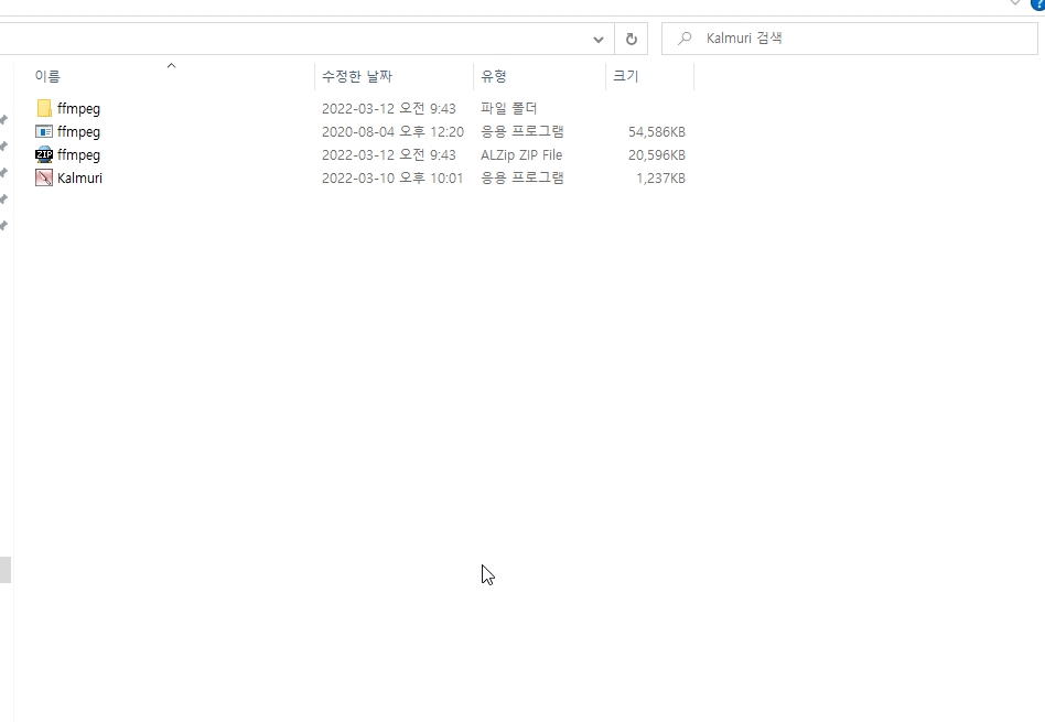 하지만 2틀전부터 오류가 발생하더니 ffmpeg 파일 저장화면으로 바뀌더라구요.
