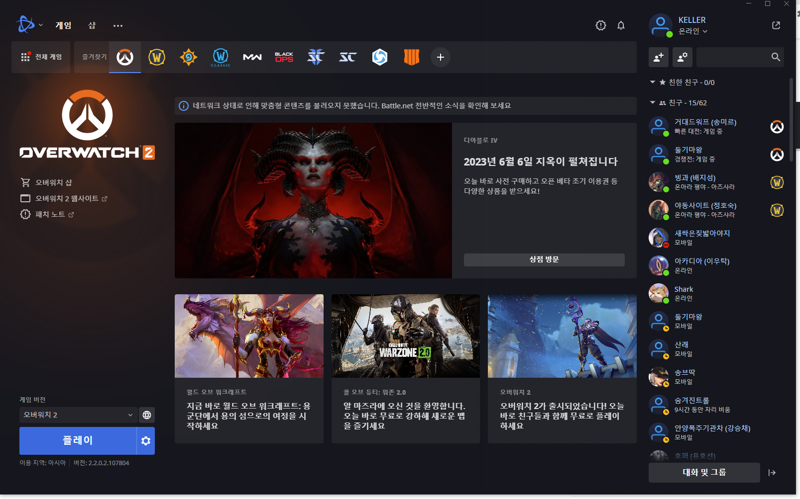 시크릿 dns를 잘만들어주셔서 고맙게 이용하고 있는 유저입니다 오버워치2를 잘하고있데시크릿 dns를 킨상태에서 배틀넷 앱을켜면사진 1번 처럼  네트워크 상태로 인해 맞춤형 콘텐츠를 불러오지 못했습니다. Battle.net 전반적인 소식을 확인해 보세요 라고 뜨면서 그게임 에 맞는 최신 소식이 안떠요 물론 게임은 잘실행이 됩니다 하지만 시크릿 DNS매번 켜두는게 습관인데 끄면 2번쨰 사진처럼 최신 소식이 잘뜨는데 어뎋게 해결할수있을까요?