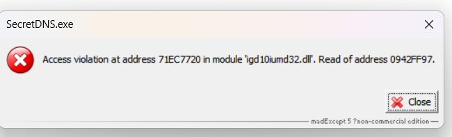 Access violation at address 72437720 in module 'igd10iumd32.dll'. Read of address 08C39FAF.
