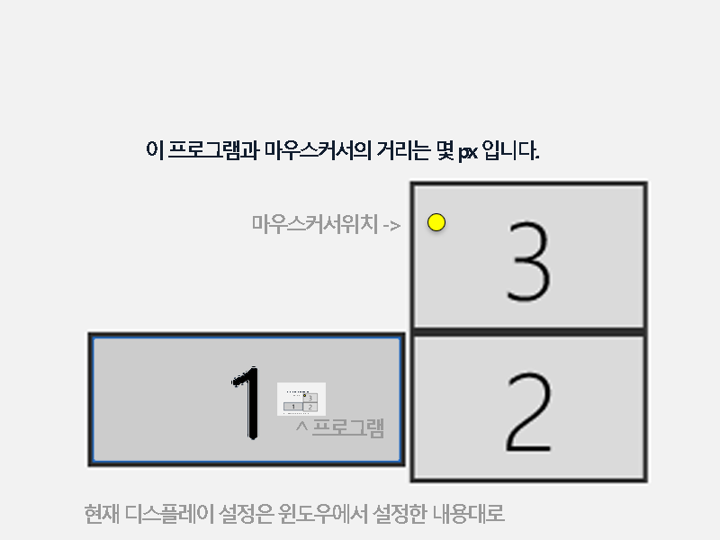 프로그램안에는 모니터 배치상황이 뜨고, 마우스커서가 어디에 있는지 표시해주며,