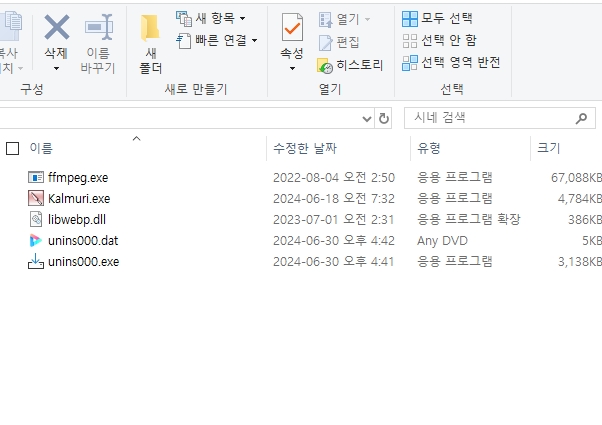 기존 폴더에 있던 파일들이 다 사라지고, 칼무리 관련 파일만 남았네요 ㅠㅠ