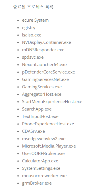 리포트 프로그램 사용시 뜨는 프로세스목록인데 문제되는게있을까요?