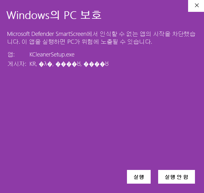 다운받아 실행하면 마이크로소프트 디펜더 스마트 스크린이 막습니다
