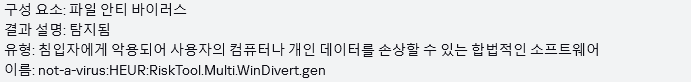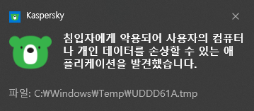 하지만 Kaspersky가 오탐이 아닌 경고 알림을 띄우는 것은 저로서도 해결하기 어려운 부분이네요.