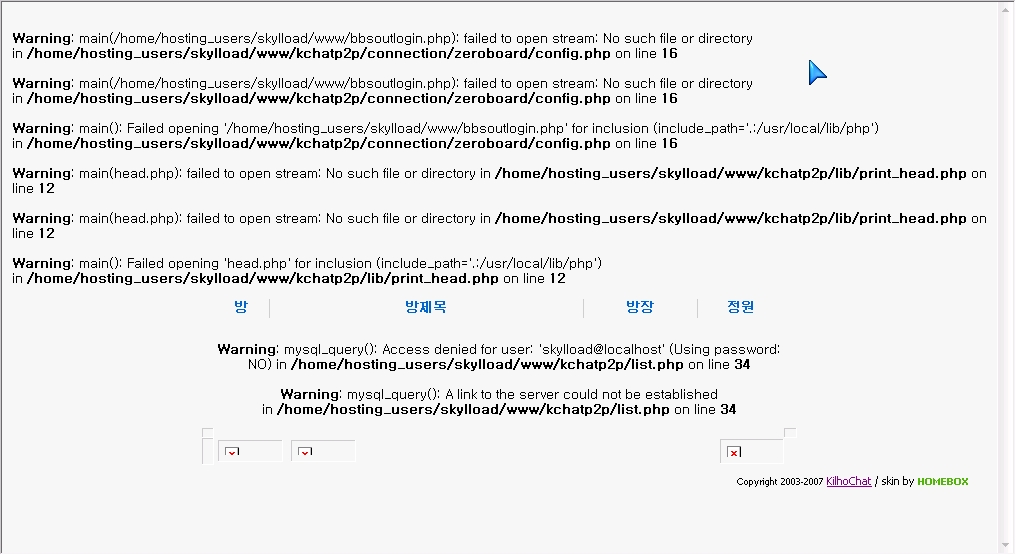 제가 www 폴더안에 kchatp2p폴더를 서버에 올리고나서 권한설정을 777을
