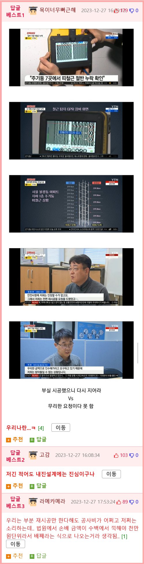 내진용 고무 자재를 잘못 쓴 것이 발견돼서
