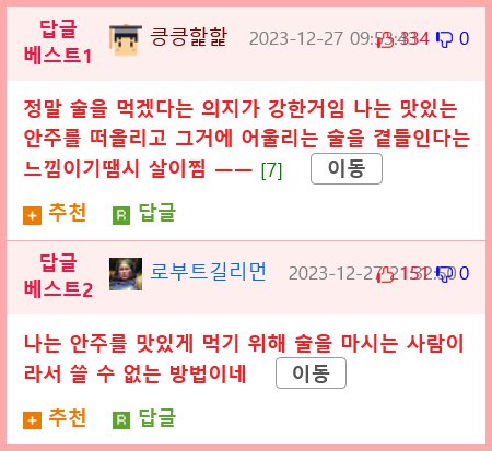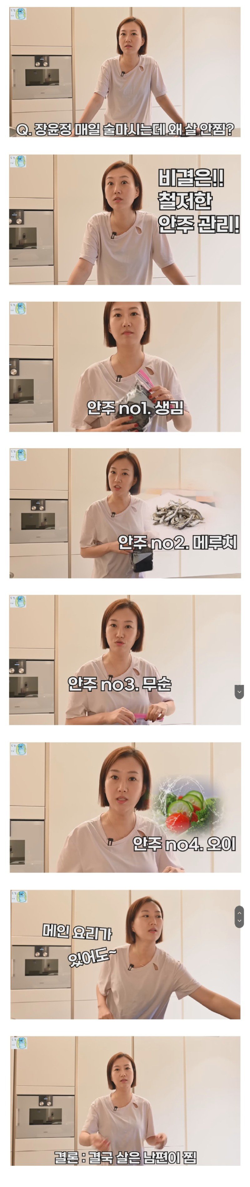 이어서 다른 답글 중에서는 "나는 안주를 맛있게 먹지 않기 때문에 술을 먹는 방법을 몰라서 쓸 수가 없어요." 라고 말하는데, 그래서 안주 no1.은 생김먹이고, 안주 no3.은 무순 살이시답글로부터 나온 것이고, 안주 no2.는 메루치인데, 비결은 철저한 안주관리라고 합니다. 술을 마시는 사람이 살이 더 쪄지 않으려면 안주를 잘 고르고 관리해야 한다는 의견입니다.
