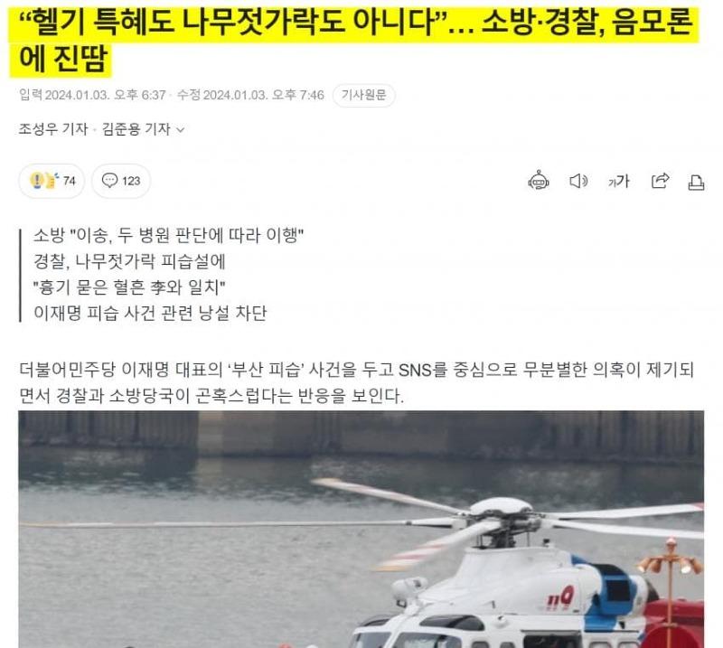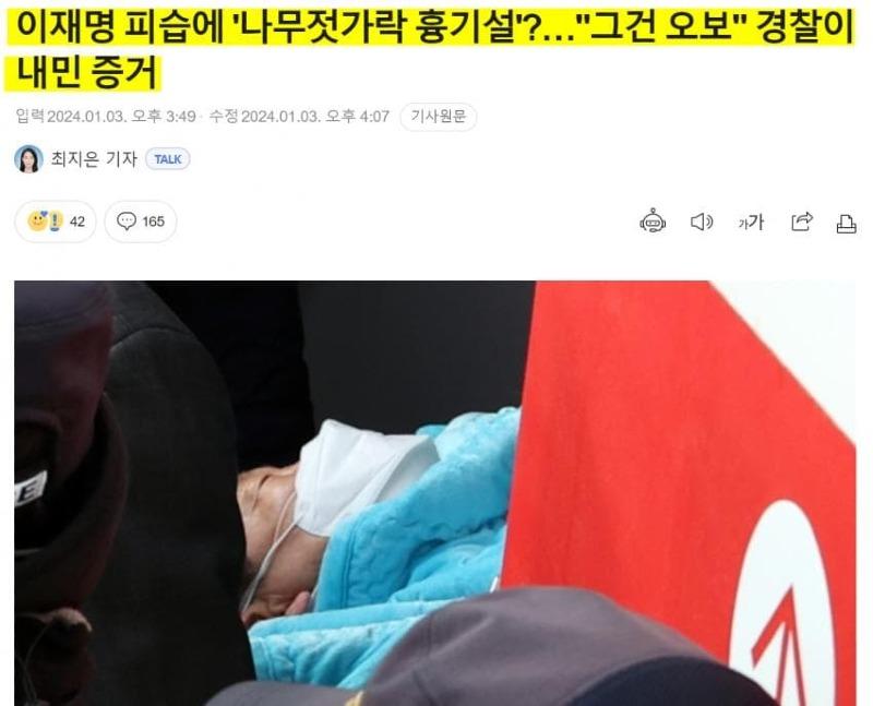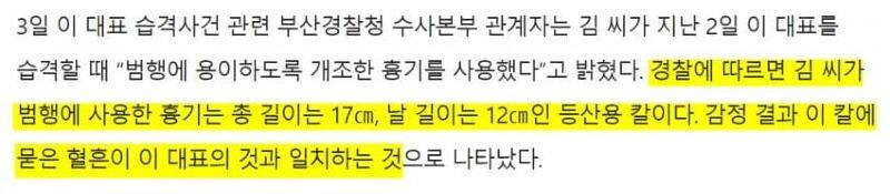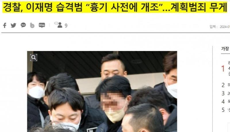 경찰 "흉기 칼날과 상처 일치하며 흉기에 묻은 혈흔은 이재명 대표의 혈흔과 일치"