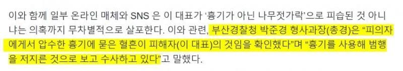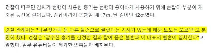 경찰 "흉기에 묻은 혈흔은 이대표의 혈흔과 일치"