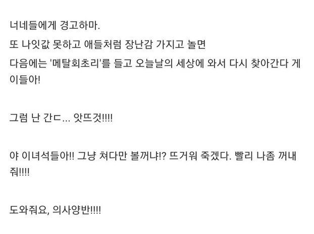 나는 과거로 왔는데, 왜냐하면 너희들이 너무 한심해서이다. 못하고 어린애들이나 가지고 노는 장난감을 보면서 너희들을 부셔버리려고 왔다.