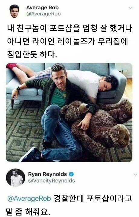 내 친구놈이 포토샵 달인이거나, 아니면... 도레미 쪽지보내기자기소개아이디로 검색전체게시물 01-28 6,470 회 0 건 Average Rob의 친구가 잘하는 포토샵 때문에, 집에 Ryan Reynolds가 침입한 것 같은 기분이 든다고 한다. Average Rob은 Ryan Reynolds에게 경찰에게 포토샵이라고 말해달라고 부탁했다. 목록 이메일 주소는 공개되지 않습니다. 댓글 * 이름 * 비밀번호 * 비밀글 사용 제목 글쓴이 조회 날짜 백종원 라면왕 대회 금단비 쪽지보내기자기소개아이디로 검색전체게시물 6,169 0 24-01-30 금단비 쪽지보내기자기소개아이디로 검색전체게시물 6,169 24-01-30 불법체류자들 단속 레전드 사건.jpg 밝은횃불 쪽지보내기자기소개아이디로 검색전체게시물 6,335 0 24-01-30 밝은횃불 쪽지보내기자기소개아이디로 검색전체게시물 6,335 24-01-30 너무나 강력했던 이성계의 유전자 재미난도시락 쪽지보내기자기소개아이디로 검색전체게시물 6,292 0 24-01-29 재미난도시락 쪽지보내기자기소개아이디로 검색전체게시물 6,292 24-01-29 박수홍 형수가 보낸 카톡 내용 ㄷㄷㄷ 1 얼음사이다 쪽지보내기자기소개아이디로 검색전체게시물 6,567 1 24-01-29 얼음사이다 쪽지보내기자기소개아이디로 검색전체게시물 6,567 24-01-29 떨어지면 죽겠다는 탤런트 시험 보러 온 일반인 세계는지금 쪽지보내기자기소개아이디로 검색전체게시물 6,437 0 24-01-29 세계는지금 쪽지보내기자기소개아이디로 검색전체게시물 6,437 24-01-29 사막에서 차가 고장난 프랑스인의 선택.jpg 지니까꿍 쪽지보내기자기소개아이디로 검색전체게시물 6,168 0 24-01-28 지니까꿍 쪽지보내기자기소개아이디로 검색전체게시물 6,168 24-01-28 아무도 날 모르는데 난 유명하고 통장엔 8억이 있음 동태탕 쪽지보내기자기소개아이디로 검색전체게시물 6,519 0 24-01-28 동태탕 쪽지보내기자기소개아이디로 검색전체게시물 6,519 24-01-28 ⭐ 내 친구놈이 포토샵 달인이거나, 아니면... 도레미 쪽지보내기자기소개아이디로 검색전체게시물 6,471 0 24-01-28 도레미 쪽지보내기자기소개아이디로 검색전체게시물 6,471 24-01-28 고향에 방문한 기안84 세계는지금 쪽지보내기자기소개아이디로 검색전체게시물 6,228 0 24-01-27 세계는지금 쪽지보내기자기소개아이디로 검색전체게시물 6,228 24-01-27 가난한 나라에서 터진 일이라고 무시한 결과.jpg 옆집총각 쪽지보내기자기소개아이디로 검색전체게시물 6,012 0 24-01-27 옆집총각 쪽지보내기자기소개아이디로 검색전체게시물 6,012 24-01-27 기아 영업이익 사상최대 11조 넘어 세계는지금 쪽지보내기자기소개아이디로 검색전체게시물 6,001 0 24-01-27 세계는지금 쪽지보내기자기소개아이디로 검색전체게시물 6,001 24-01-27 양준혁 대방어회, 모아나 바지락 , 엘사 양송이 금단비 쪽지보내기자기소개아이디로 검색전체게시물 6,359 0 24-01-26 금단비 쪽지보내기자기소개아이디로 검색전체게시물 6,359 24-01-26 만드는데 10년 걸린 도시락.jpg 1 도레미 쪽지보내기자기소개아이디로 검색전체게시물 6,594 1 24-01-26 도레미 쪽지보내기자기소개아이디로 검색전체게시물 6,594 24-01-26 미스 재팬 클라스 재미난도시락 쪽지보내기자기소개아이디로 검색전체게시물 6,284 0 24-01-25 재미난도시락 쪽지보내기자기소개아이디로 검색전체게시물 6,284 24-01-25 페티쉬는 돈이 된다.onlyfans 세계는지금 쪽지보내기자기소개아이디로 검색전체게시물 6,174 0 24-01-25 세계는지금 쪽지보내기자기소개아이디로 검색전체게시물 6,174 24-01-25 전 빅뱅 승리 근황 아시가루 쪽지보내기자기소개아이디로 검색전체게시물 5,988 0 24-01-25 아시가루 쪽지보내기자기소개아이디로 검색전체게시물 5,988 24-01-25 태평양 전쟁 최고로 꿀 빤 일본군 아시가루 쪽지보내기자기소개아이디로 검색전체게시물 5,994 0 24-01-24 아시가루 쪽지보내기자기소개아이디로 검색전체게시물 5,994 24-01-24 상인회장 분노의 인터뷰..jpg 옆집총각 쪽지보내기자기소개아이디로 검색전체게시물 5,816 0 24-01-24 옆집총각 쪽지보내기자기소개아이디로 검색전체게시물 5,816 24-01-24 이탈리아에 터진 한국인 인종혐오 폭행사건.ㄷㄷㄷ 세계는지금 쪽지보내기자기소개아이디로 검색전체게시물 5,959 0 24-01-24 세계는지금 쪽지보내기자기소개아이디로 검색전체게시물 5,959 24-01-24 VIP 경호원이 짤린 이유 밝은횃불 쪽지보내기자기소개아이디로 검색전체게시물 6,220 0 24-01-23 밝은횃불 쪽지보내기자기소개아이디로 검색전체게시물 6,220 24-01-23 정은경 전 초대 질병관리청장 근황 1 아시가루 쪽지보내기자기소개아이디로 검색전체게시물 6,418 1 24-01-23 아시가루 쪽지보내기자기소개아이디로 검색전체게시물 6,418 24-01-23 생활고 숨통을 트이게 해준 작품 지니까꿍 쪽지보내기자기소개아이디로 검색전체게시물 6,079 0 24-01-23 지니까꿍 쪽지보내기자기소개아이디로 검색전체게시물 6,079 24-01-23 러시아에서 오해하는 한국 속담의 뜻.jpg 얼음사이다 쪽지보내기자기소개아이디로 검색전체게시물 6,597 0 24-01-22 얼음사이다 쪽지보내기자기소개아이디로 검색전체게시물 6,597 24-01-22 대기권 재진입이 의미하는 것... 재미난도시락 쪽지보내기자기소개아이디로 검색전체게시물 6,901 0 24-01-22 재미난도시락 쪽지보내기자기