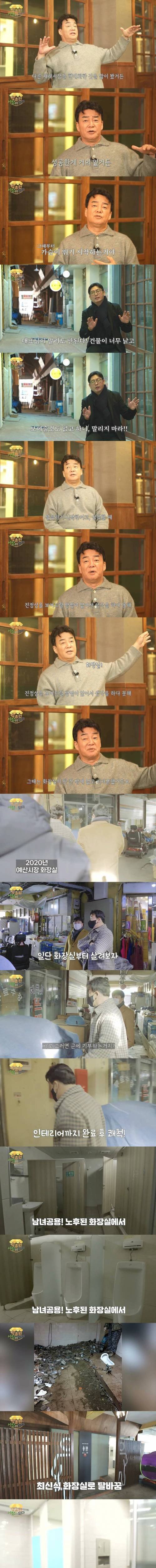 백종원 시장은 매년 장사하는 동안 다른 재래시장들이 화장실을 바꾸는 모습을 보게 되었습니다. 왜 모두가 화장실을 개선하는 것일까요? 그 이유는 아직은 알 수 없지만, 백종원 시장은 자신의 실력과 경영에 자신감을 갖게 되었습니다. 그래서 백종원 시장은 화장실을 깔끔하게 관리하고 고객들이 편안하게 이용할 수 있는 환경을 만들기 위해 노력하고 있습니다.