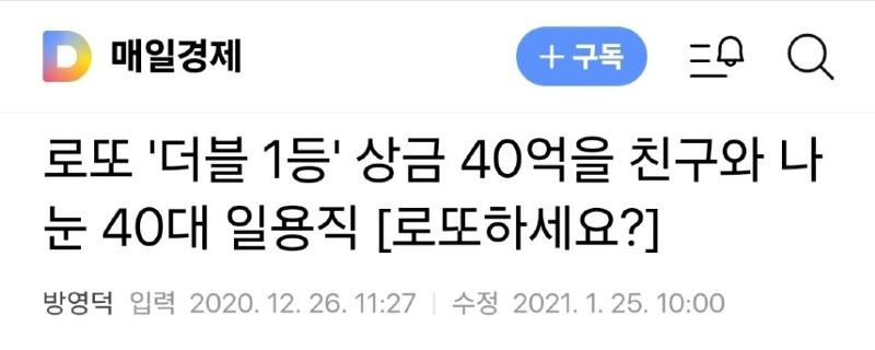 매일경제로또 '더블 1등' 상금 40억을 친구와 나눈 40대 일용직