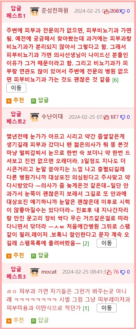 피부과 병원 찾다가 빡치는 이유.jpg 재미난도시락 쪽지보내기자기소개아이디로 검색전체게시물 02-29 6,714 회 0 건 피부 아픈 환자는 안봐주는 피부과는 이름 못쓰는 법 좀 만들어줘. 환자들이 구분해 가면서 찾아가야 하냐고. 주변에 피부과 전문의가 없으면, 피부비뇨기과 가면 됨. 예전에 눈가가 아프고 시리고 약간 좁쌀같은게 생기길래 피부과 갔더니 - 의사가 좀 늦게온 것 같은데~ 일단 안과가서 눈쪽이 괜찮은지 보래서 그길로. 목록 이메일 주소는 공개되지 않습니다. 댓글 * 이름 * 비밀번호 * 비밀글 사용 제목 글쓴이 조회 날짜 배우 이태란 근황!! 차하영 쪽지보내기자기소개아이디로 검색전체게시물 6,505 0 24-03-02 차하영 쪽지보내기자기소개아이디로 검색전체게시물 6,505 24-03-02 또 한번 난리난 GPT 상황 1 차하영 쪽지보내기자기소개아이디로 검색전체게시물 7,071 1 24-03-01 차하영 쪽지보내기자기소개아이디로 검색전체게시물 7,071 24-03-01 의외로 호불호 안갈리는 신라면.jpg 아시가루 쪽지보내기자기소개아이디로 검색전체게시물 6,580 0 24-03-01 아시가루 쪽지보내기자기소개아이디로 검색전체게시물 6,580 24-03-01 탁구치다가 100억 날린 사람 ㄷㄷㄷ 1 황희림 쪽지보내기자기소개아이디로 검색전체게시물 6,492 1 24-02-29 황희림 쪽지보내기자기소개아이디로 검색전체게시물 6,492 24-02-29 MZ세대 유행하는 인생네컷 세계는지금 쪽지보내기자기소개아이디로 검색전체게시물 6,938 0 24-02-29 세계는지금 쪽지보내기자기소개아이디로 검색전체게시물 6,938 24-02-29 ⭐ 피부과 병원 찾다가 빡치는 이유.jpg 재미난도시락 쪽지보내기자기소개아이디로 검색전체게시물 6,715 0 24-02-29 재미난도시락 쪽지보내기자기소개아이디로 검색전체게시물 6,715 24-02-29 비행기로 등교하는 버클리대생 화제...이유는 월세보다 싸.. 세계는지금 쪽지보내기자기소개아이디로 검색전체게시물 6,862 0 24-02-28 세계는지금 쪽지보내기자기소개아이디로 검색전체게시물 6,862 24-02-28 개그맨 중 이혼 커플이 없는 이유 고예 쪽지보내기자기소개아이디로 검색전체게시물 6,787 0 24-02-28 고예 쪽지보내기자기소개아이디로 검색전체게시물 6,787 24-02-28 히딩크가 명장인 이유 백림 쪽지보내기자기소개아이디로 검색전체게시물 6,383 0 24-02-27 백림 쪽지보내기자기소개아이디로 검색전체게시물 6,383 24-02-27 인터넷에 퍼진 의사 입장 Top 8 류훈아 쪽지보내기자기소개아이디로 검색전체게시물 6,164 0 24-02-27 류훈아 쪽지보내기자기소개아이디로 검색전체게시물 6,164 24-02-27 미국트위터에서 지금 최고로 핫한 밈 아시가루 쪽지보내기자기소개아이디로 검색전체게시물 6,481 0 24-02-27 아시가루 쪽지보내기자기소개아이디로 검색전체게시물 6,481 24-02-27 비뇨기과 의사가 말하는 최고의 비아그라. jpg 지니까꿍 쪽지보내기자기소개아이디로 검색전체게시물 6,926 0 24-02-26 지니까꿍 쪽지보내기자기소개아이디로 검색전체게시물 6,926 24-02-26 브래지어 후크를 발명한 사람 황희림 쪽지보내기자기소개아이디로 검색전체게시물 6,432 0 24-02-26 황희림 쪽지보내기자기소개아이디로 검색전체게시물 6,432 24-02-26 자영업자들이 기피한다는 상권.jpg 하선훈 쪽지보내기자기소개아이디로 검색전체게시물 6,140 0 24-02-26 하선훈 쪽지보내기자기소개아이디로 검색전체게시물 6,140 24-02-26 경계선 지능을 겪은 아이들의 상태 동태탕 쪽지보내기자기소개아이디로 검색전체게시물 6,252 0 24-02-25 동태탕 쪽지보내기자기소개아이디로 검색전체게시물 6,252 24-02-25 한의사가 알려주는 주변 개원의사들 실수입 신림사 쪽지보내기자기소개아이디로 검색전체게시물 6,869 0 24-02-25 신림사 쪽지보내기자기소개아이디로 검색전체게시물 6,869 24-02-25 특S급 짝퉁이 나오는 이유 밝은횃불 쪽지보내기자기소개아이디로 검색전체게시물 7,126 0 24-02-25 밝은횃불 쪽지보내기자기소개아이디로 검색전체게시물 7,126 24-02-25 오픈북해도 낙제가 나오는 이유 옆집총각 쪽지보내기자기소개아이디로 검색전체게시물 6,189 0 24-02-24 옆집총각 쪽지보내기자기소개아이디로 검색전체게시물 6,189 24-02-24 억 단위 수도세 사건 모카크림 쪽지보내기자기소개아이디로 검색전체게시물 6,200 0 24-02-24 모카크림 쪽지보내기자기소개아이디로 검색전체게시물 6,200 24-02-24 한국의 과학자들이 줄기세포로 벌인 일 아시가루 쪽지보내기자기소개아이디로 검색전체게시물 5,893 0 24-02-24 아시가루 쪽지보내기자기소개아이디로 검색전체게시물 5,893 24-02-24 손님 사이다 맥인 중국집 사장 동태탕 쪽지보내기자기소개아이디로 검색전체게시물 6,277 0 24-02-23 동태탕 쪽지보내기자기소개아이디로 검색전체게시물 6,277 24-02-23 아시아 최고의 기부왕 동태탕 쪽지보내기자기소개아이디로 검색전체게시물 6,181 0 24-02-23 동태탕 쪽지보내기자기소개아이디로 검색전체게시물 6,181 24-02-23 '한글' 코카콜라..."130년 역사상 첫 사례" 최미 쪽지보내기자기소개아이디로 검색전체게시물 6,182 0 24-02-23 최미 쪽지보내기자기소개아이디로 검색전체게시물 6,182 24-02-23 발랄한 회사를 원했던 대표님.jpg 고예 쪽지보내기자기소개아이디로 검색전체게시물 6,109 0 24-02-22 고예 쪽지보내기