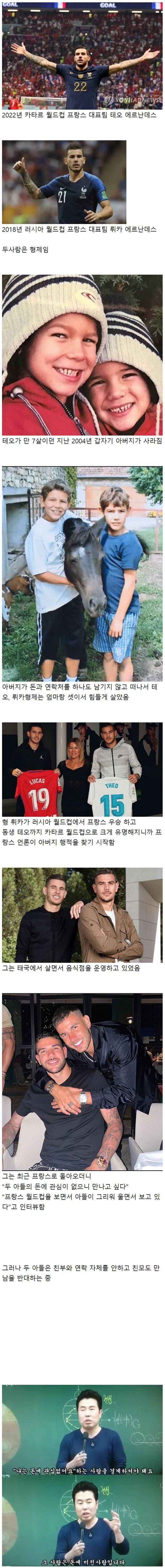 2022년 카타르 월드컵에서 프랑스 대표팀에 소속된 형제인 테오와 뤼카 에르난데스는 아버지가 2004년에 갑자기 사라진 후 엄마와 함께 힘들게 살아왔다. 뤼카는 2018년 러시아 월드컵에서 우승을 차지하고 동생 테오도 카타르 월드컵으로 크게 활약하면서 두 형제는 큰 주목을 받았다. 그러나 프랑스 언론은 아버지의 행방을 조사하기 시작했고, 태국에서 음식점을 운영하던 아버지는 프랑스로 돌아와 자식들을 보고 싶다고 밝혔다. 하지만 자식들은 아버지와의 연락을 거부하고 있다. 이에 대한 여론은 분분하며, 돈에 미친 아버지를 비판하는 목소리도 있었다.