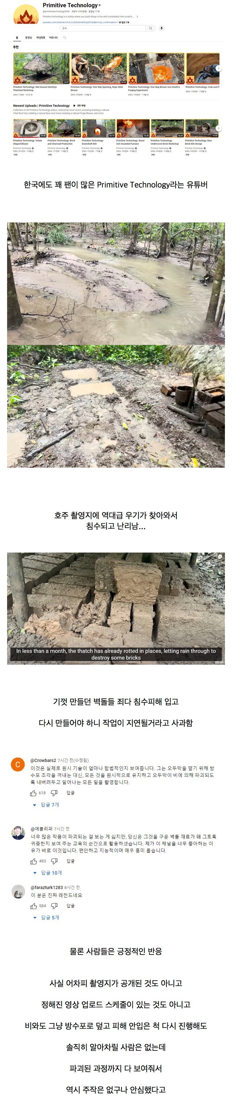 야생에서 선사시대 기술 보여주는 구독자 1000만 유투버 근황