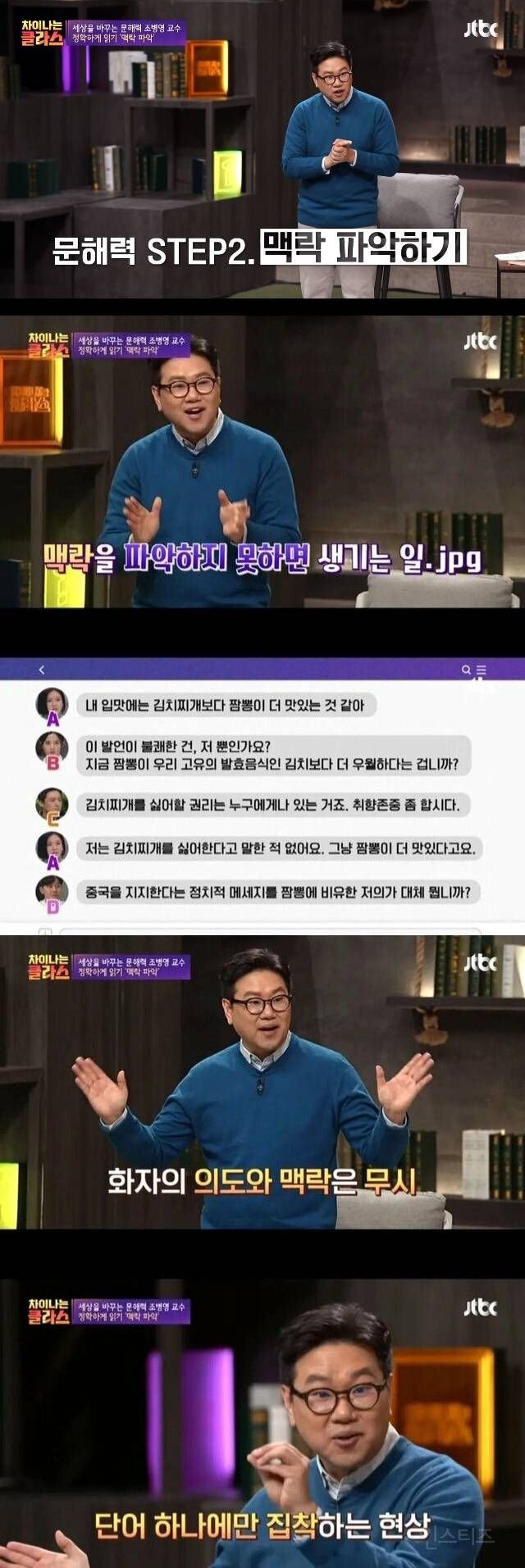 조병영 교수의 강의는 차이나는 세상을 바꾸는 문해력을 갖추는 데 도움이 될 것입니다. 맥락을 파악하는 것은 매우 중요한데, 그렇지 않으면 오해가 생길 수 있습니다. 누군가가 김치찌개보다 짬뽕을 더 좋아한다는 발언이 불편하다고 생각하는 것은 그 사람의 개인적인 취향일 뿐입니다. 다른 이들의 의견을 존중해주는 것이 중요합니다. 이렇게 단어 하나에만 집착하는 행동은 문맥을 이해하지 못하는 것과 같습니다. 제대로된 맥락을 파악하는 능력은 소통과 이해를 더 원활하게 만들어줄 것입니다.