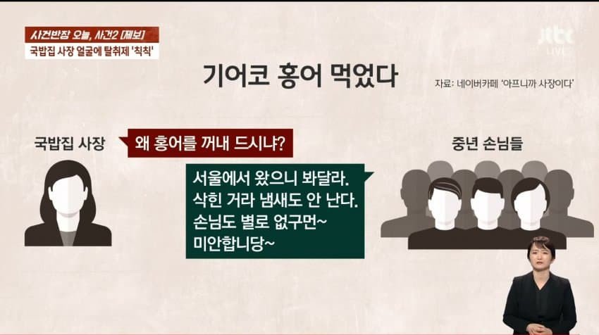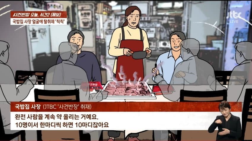난리난 국밥집 상황.JPG 황희림 쪽지보내기자기소개아이디로 검색전체게시물 05-13 6,011 회 0 건 건반장' 취재) "중년 남성 10명이 홍어 먹으러 왔는데, 홍어가 없어서 냄새도 날까봐 '칙칙'을 뿌린 거예요. 손님이 부족해서 죄송합니다~" 목록 이메일 주소는 공개되지 않습니다. 댓글 * 이름 * 비밀번호 * 비밀글 사용 제목 글쓴이 조회 날짜 이경규 '펫티켓' 발언에...개주인들 격분 최미 쪽지보내기자기소개아이디로 검색전체게시물 6,186 0 24-05-20 최미 쪽지보내기자기소개아이디로 검색전체게시물 6,186 24-05-20 얼음을 900원이나 주고 사먹는 이유 ㄷㄷ.jpg 밝은횃불 쪽지보내기자기소개아이디로 검색전체게시물 6,842 0 24-05-20 밝은횃불 쪽지보내기자기소개아이디로 검색전체게시물 6,842 24-05-20 서유리 충격 고백 ㄷㄷㄷ 류훈아 쪽지보내기자기소개아이디로 검색전체게시물 6,350 0 24-05-19 류훈아 쪽지보내기자기소개아이디로 검색전체게시물 6,350 24-05-19 현재 피식대학 개까이는 이유 황희림 쪽지보내기자기소개아이디로 검색전체게시물 6,210 0 24-05-19 황희림 쪽지보내기자기소개아이디로 검색전체게시물 6,210 24-05-19 다음달부터 해외 직구 차단되는 품목 ㄷㄷ.jpg 신림사 쪽지보내기자기소개아이디로 검색전체게시물 6,154 0 24-05-19 신림사 쪽지보내기자기소개아이디로 검색전체게시물 6,154 24-05-19 요즘 김 값이 비싼 이유 재미난도시락 쪽지보내기자기소개아이디로 검색전체게시물 6,709 0 24-05-18 재미난도시락 쪽지보내기자기소개아이디로 검색전체게시물 6,709 24-05-18 미국 교수가 말하는 한반도 통일.jpg 신림사 쪽지보내기자기소개아이디로 검색전체게시물 6,239 0 24-05-18 신림사 쪽지보내기자기소개아이디로 검색전체게시물 6,239 24-05-18 바이킹들이 무기에 룬문자 새긴이유..jpg 동태탕 쪽지보내기자기소개아이디로 검색전체게시물 6,187 0 24-05-18 동태탕 쪽지보내기자기소개아이디로 검색전체게시물 6,187 24-05-18 방송접고 자연으로 돌아간 연예인.jpg 금단비 쪽지보내기자기소개아이디로 검색전체게시물 5,940 0 24-05-17 금단비 쪽지보내기자기소개아이디로 검색전체게시물 5,940 24-05-17 장사의신 근황 ㄷㄷㄷ 황희림 쪽지보내기자기소개아이디로 검색전체게시물 6,240 0 24-05-17 황희림 쪽지보내기자기소개아이디로 검색전체게시물 6,240 24-05-17 블라인드 좋아요 100개 받은 댓글 재미난도시락 쪽지보내기자기소개아이디로 검색전체게시물 6,302 0 24-05-17 재미난도시락 쪽지보내기자기소개아이디로 검색전체게시물 6,302 24-05-17 '복지천국'으로 알려졌던 스웨덴 근황... 달콤별 쪽지보내기자기소개아이디로 검색전체게시물 6,368 0 24-05-16 달콤별 쪽지보내기자기소개아이디로 검색전체게시물 6,368 24-05-16 마동석 병역기피 진실 ㄷㄷ 도레미 쪽지보내기자기소개아이디로 검색전체게시물 8,652 0 24-05-16 도레미 쪽지보내기자기소개아이디로 검색전체게시물 8,652 24-05-16 배우, 연예인들 삥뜯는 영화 감독 ㅋㅋㅋ 모카크림 쪽지보내기자기소개아이디로 검색전체게시물 6,682 0 24-05-16 모카크림 쪽지보내기자기소개아이디로 검색전체게시물 6,682 24-05-16 와....이건 LG의인상 감!! 금단비 쪽지보내기자기소개아이디로 검색전체게시물 5,971 0 24-05-15 금단비 쪽지보내기자기소개아이디로 검색전체게시물 5,971 24-05-15 블라인드를 개발하게 된 이유.jpg 옆집총각 쪽지보내기자기소개아이디로 검색전체게시물 6,131 0 24-05-15 옆집총각 쪽지보내기자기소개아이디로 검색전체게시물 6,131 24-05-15 다단계하는 인스타 특징 재미난도시락 쪽지보내기자기소개아이디로 검색전체게시물 6,373 0 24-05-15 재미난도시락 쪽지보내기자기소개아이디로 검색전체게시물 6,373 24-05-15 중국을 제대로 긁을줄 아는 멕시코 아재 달콤별 쪽지보내기자기소개아이디로 검색전체게시물 5,729 0 24-05-14 달콤별 쪽지보내기자기소개아이디로 검색전체게시물 5,729 24-05-14 하와이 물가 근황 ㄷㄷ.jpg 1 금단비 쪽지보내기자기소개아이디로 검색전체게시물 7,553 1 24-05-14 금단비 쪽지보내기자기소개아이디로 검색전체게시물 7,553 24-05-14 ⭐ 난리난 국밥집 상황.JPG 황희림 쪽지보내기자기소개아이디로 검색전체게시물 6,012 0 24-05-13 황희림 쪽지보내기자기소개아이디로 검색전체게시물 6,012 24-05-13 유튜브에서 이런 거만 보는 사람들 있음 하선훈 쪽지보내기자기소개아이디로 검색전체게시물 5,816 0 24-05-13 하선훈 쪽지보내기자기소개아이디로 검색전체게시물 5,816 24-05-13 한국에서 독일 스타일로 운전하려는 눈나.jpg 밝은횃불 쪽지보내기자기소개아이디로 검색전체게시물 6,163 0 24-05-13 밝은횃불 쪽지보내기자기소개아이디로 검색전체게시물 6,163 24-05-13 10년 다니던 회사 그만두고 느낀 점.jpg 황희림 쪽지보내기자기소개아이디로 검색전체게시물 6,334 0 24-05-13 황희림 쪽지보내기자기소개아이디로 검색전체게시물 6,334 24-05-13 한국 병사들이 이론적으로 높은 평가를 받는 이유.jpg 금단비 쪽지보내기자기소개아이디로 검색전체게시물 5,744 0 24-05-12 금단비 쪽지보내기자기소개아이디로 검색전체게시물 5,744 24-05-12 복권 1등에 당첨된 성범죄자의 결말 최미 쪽지보내기자기소개아이디로 검색전체게시물 6,205 0 24-05-12 최미