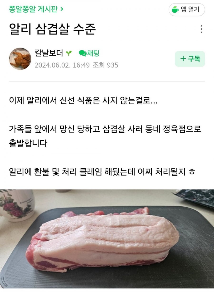 지금 맘카페에서 난리나버린 삼겹살.jpg 재미난도시락 쪽지보내기자기소개아이디로 검색전체게시물 06-03 6,383 회 0 건 비계가 너무 심하네요 ㄷㄷ 알리 삼겹살 수준 앱으로 식품 구매 후 가족들 앞에서 망신! 환불 요청하는데 클레임은 어떻게 해결될까? 알리에서 삼겹살 사던 소비자들, 이제는 동네 정육점으로 출발합니다. 현재 25천원인 앱, 할인 시 쌌던 것도 있다! 발표자료 작성자 N, 소비자들 혼나게 할인 이벤트 벌이는 것뿐! 목록 이메일 주소는 공개되지 않습니다. 댓글 * 이름 * 비밀번호 * 비밀글 사용 제목 글쓴이 조회 날짜 은퇴한 업계 프로에게 딱 걸린 범죄자.jpg 밝은횃불 쪽지보내기자기소개아이디로 검색전체게시물 6,323 0 24-06-14 밝은횃불 쪽지보내기자기소개아이디로 검색전체게시물 6,323 24-06-14 이원일 셰프가 식당을 운영하는 전략 세계는지금 쪽지보내기자기소개아이디로 검색전체게시물 7,166 0 24-06-12 세계는지금 쪽지보내기자기소개아이디로 검색전체게시물 7,166 24-06-12 남편죽고 30년동어 막노동으로 딸키운 어머니 1 지니까꿍 쪽지보내기자기소개아이디로 검색전체게시물 6,563 1 24-06-12 지니까꿍 쪽지보내기자기소개아이디로 검색전체게시물 6,563 24-06-12 밀려드는 중국산에 칼 빼든 국가들 신림사 쪽지보내기자기소개아이디로 검색전체게시물 6,669 0 24-06-12 신림사 쪽지보내기자기소개아이디로 검색전체게시물 6,669 24-06-12 맥도날드 주가 근황. jpg 재미난도시락 쪽지보내기자기소개아이디로 검색전체게시물 6,748 0 24-06-11 재미난도시락 쪽지보내기자기소개아이디로 검색전체게시물 6,748 24-06-11 9만원짜리 백반 수준 모카크림 쪽지보내기자기소개아이디로 검색전체게시물 6,802 0 24-06-11 모카크림 쪽지보내기자기소개아이디로 검색전체게시물 6,802 24-06-11 속초에서 지갑 잃어버린 BBC 기자 백림 쪽지보내기자기소개아이디로 검색전체게시물 7,215 0 24-06-10 백림 쪽지보내기자기소개아이디로 검색전체게시물 7,215 24-06-10 싱가폴에 대승한 손흥민 인터뷰.jpg 옆집총각 쪽지보내기자기소개아이디로 검색전체게시물 6,766 0 24-06-10 옆집총각 쪽지보내기자기소개아이디로 검색전체게시물 6,766 24-06-10 제주도는 진짜 큰일났네요 ㄷ JPG 신림사 쪽지보내기자기소개아이디로 검색전체게시물 6,607 0 24-06-09 신림사 쪽지보내기자기소개아이디로 검색전체게시물 6,607 24-06-09 현재 큰일났다는 제주 외래종 꽃게 등장 2 황희림 쪽지보내기자기소개아이디로 검색전체게시물 7,041 2 24-06-09 황희림 쪽지보내기자기소개아이디로 검색전체게시물 7,041 24-06-09 밀양사건 피해자에게 받은 자료 있다는 유튜버.jpg 아시가루 쪽지보내기자기소개아이디로 검색전체게시물 6,361 0 24-06-09 아시가루 쪽지보내기자기소개아이디로 검색전체게시물 6,361 24-06-09 밀양시, 유감 표명하는 공식입장 발표 고민 중 황희림 쪽지보내기자기소개아이디로 검색전체게시물 7,191 0 24-06-07 황희림 쪽지보내기자기소개아이디로 검색전체게시물 7,191 24-06-07 독도에 걸린 욱일기 밝은횃불 쪽지보내기자기소개아이디로 검색전체게시물 6,786 0 24-06-07 밝은횃불 쪽지보내기자기소개아이디로 검색전체게시물 6,786 24-06-07 밀양 넘버쓰리 공개영상 댓글장원 얼음사이다 쪽지보내기자기소개아이디로 검색전체게시물 6,930 0 24-06-06 얼음사이다 쪽지보내기자기소개아이디로 검색전체게시물 6,930 24-06-06 전세계 수돗물 상황 차하영 쪽지보내기자기소개아이디로 검색전체게시물 6,861 0 24-06-06 차하영 쪽지보내기자기소개아이디로 검색전체게시물 6,861 24-06-06 신동엽 명언 feat 밀양강간 밝은횃불 쪽지보내기자기소개아이디로 검색전체게시물 7,654 0 24-06-05 밝은횃불 쪽지보내기자기소개아이디로 검색전체게시물 7,654 24-06-05 천조국 성범죄 전과자 처리 현황 1 하선훈 쪽지보내기자기소개아이디로 검색전체게시물 7,500 1 24-06-05 하선훈 쪽지보내기자기소개아이디로 검색전체게시물 7,500 24-06-05 전설의 람보르기니 인증 옆집총각 쪽지보내기자기소개아이디로 검색전체게시물 6,929 0 24-06-04 옆집총각 쪽지보내기자기소개아이디로 검색전체게시물 6,929 24-06-04 밀양 여중생 집단 성폭행에서 경찰이 한 짓 밝은횃불 쪽지보내기자기소개아이디로 검색전체게시물 6,504 0 24-06-04 밝은횃불 쪽지보내기자기소개아이디로 검색전체게시물 6,504 24-06-04 흉터 문신 전문가. jpg 도레미 쪽지보내기자기소개아이디로 검색전체게시물 6,464 0 24-06-04 도레미 쪽지보내기자기소개아이디로 검색전체게시물 6,464 24-06-04 ⭐ 지금 맘카페에서 난리나버린 삼겹살.jpg 재미난도시락 쪽지보내기자기소개아이디로 검색전체게시물 6,384 0 24-06-03 재미난도시락 쪽지보내기자기소개아이디로 검색전체게시물 6,384 24-06-03 밀양 국밥 일 커지네 지니까꿍 쪽지보내기자기소개아이디로 검색전체게시물 6,305 0 24-06-03 지니까꿍 쪽지보내기자기소개아이디로 검색전체게시물 6,305 24-06-03 여탕이 망하는 이유 ㄷ ㄷ .jpg 지니까꿍 쪽지보내기자기소개아이디로 검색전체게시물 6,573 0 24-06-03 지니까꿍 쪽지보내기자기소개아이디로 검색전체게시물 6,573 24-06-03 대기업이 중소기업을 말려죽이는 법.jpg 신림사 쪽지보내기자기소개아이디로 검