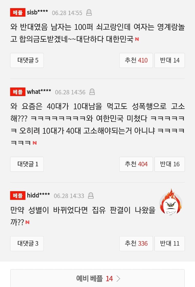제자와 술 마시고 모텔 간 한 여교사가 "성폭행"을 고소하고 항소심에서 감형 받았다. 이 여성은 근무하던 학교에서 고등학생인 제자와 성관계를 한 뒤 성폭행당했다고 주장했지만, 검찰은 이를 무고 혐의로 판단하고 징역 1년에 집행유예 2년 및 사회봉사 120시간을 선고했다. 논란이 일었지만 여교사는 항소심에서 감형됐다. 한국 사회는 미쳐버렸다는 소리도 나오고 있다. 왜 남자는 100% 쇠고랑이지만 여자는 합의금을 받을 수 있는 걸까? 성별이 바뀌었다면 집행유예 판결은 다를까? 현재 상황에서도 여성의 편이 너무 심하다는 목소리가 들리고 있다.화제의 논란 중.
