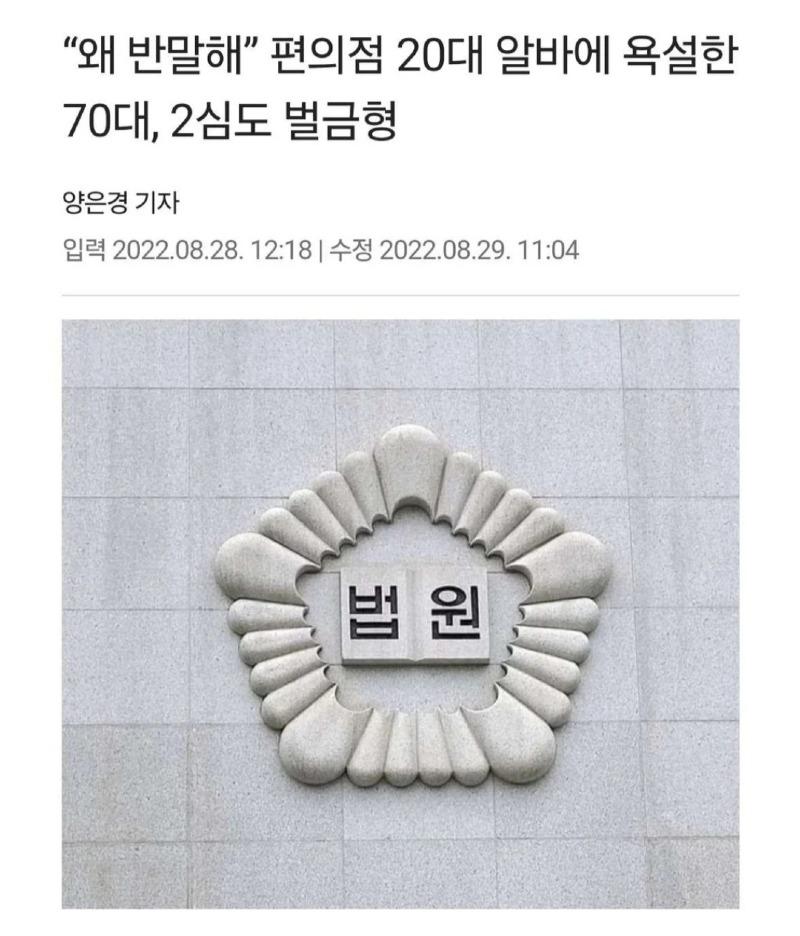 70대 남성이 알바생에게 반말을 한 사건이 논란을 빚고 있다. 2020년 11월 서울 강남 한 편의점에서 발생한 이 사건에서, 70대 남성이 20대 아르바이트생에게 어리광을 부려 욕설을 퍼부었다. 70대 남성은 담배를 구매하기 위해 편의점을 찾았고, 아르바이트생에게 상품명을 말하자 짧게 대답을 받았다. 이에 분노한 70대 남성은 아르바이트생을 모욕하며 욕설을 퍼부었고 결국 경찰에 신고당했다. 법원은 70대 남성에게 벌금형을 선고했으며, 이 사건은 사회적인 이슈로 떠오르고 있다.