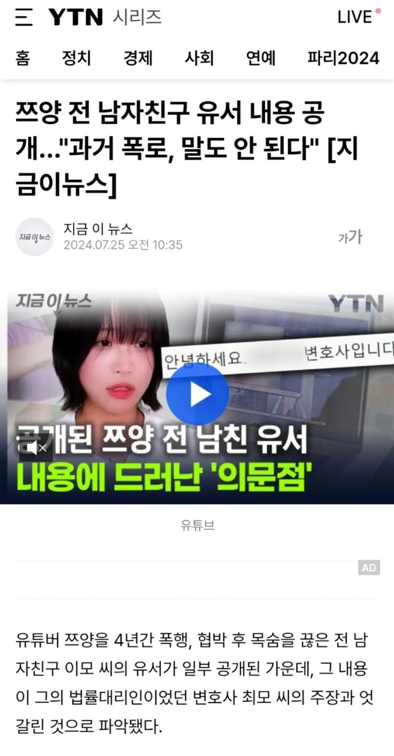 쯔양 사건 최신 근황