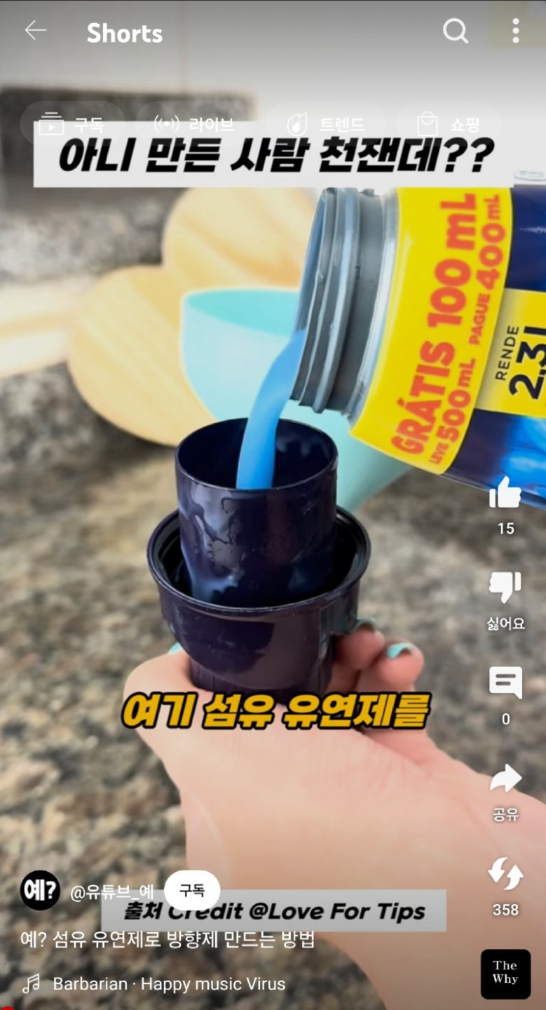 유튜브 쇼츠를 시청할 때 조심해야 하는 이유가 있습니다! 이 비디오는 탁설 학설 코드를 표시하고 있는데요, 이 라이브 방송 중 기천에서 만들어진 사람이 명단에 있습니다! 그리고 신기한 이벤트로 100mL 무료로 제공되고 400m을 지불하면 500m을 받을 수 있다고 합니다. 이 영상에서는 섬유 유연제로 방향제를 만드는 방법을 소개했는데, 정말 최고라고 합니다. 하지만 조심해야 할 점은 분무기에 담아 분사하는 방식은 사용해서는 안 된다고 경고하고 있습니다. 만약 피부 자극 반응이나 붉은 반점이 나타나면 의학적 조치가 필요하니 주의해야 합니다. 팔과 같은 곳에 발라야 하는데, 만약 삼킨다면 즉시 응급조치가 필요합니다! 이 비디오를 통해 방향제를 직접 만들어보세요!