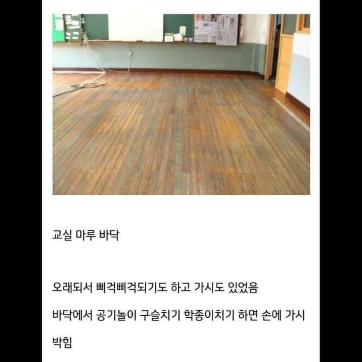 90년대 초등학교 모습.jpg! 교실에서 교탁 안에 뚱땡이 컴퓨터가 발견되었다! 바닥은 오래되어 삐걱삐걱하고 가시도 있었는데, 학생들은 손에 가시를 찔릴 정도로 공기놀이 구슬치기와 학종이치기를 즐겼다! 벨이 울리면 다 아닥하여 '합죽이가 됩시다 합'을 외치며 우유를 마셔야 했다! 서울우유가 대세인 학교에서는 분필털이와 진공분필털이가 유행했지만, 이제는 거의 사라졌다! 90년대 조별 대형 704를 이루던 학교에서는 1~6조가 대다수를 이루었고, 몇몇 학교에서는 7~8조도 형성되었다! 그리고 새로운 노트 놀이 751이란 게임까지 등장했다! 현실에서는 찾아보기 힘든 90년대 초등학교의 풍미를 되돌아보며, 시선흐름에 흥분해야한다!