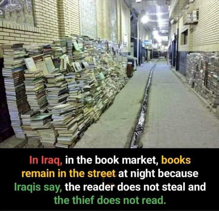 내가 어디든 책방에서 밤새 출퇴근한다고 생각해보세요! 이라크의 한 책방에서는 밤에도 책들이 길가에 두어지는 이유를 소개합니다. 이라크 국민은 '독자는 훔치지 않고 도둑은 읽지 않는다'고 말합니다. 놀라운 이 이야기를 한번 읽어보세요! 혹시 당신도 과연 독자인지 도둑인지 궁금하신가요? 함께 알아보도록 합시다!