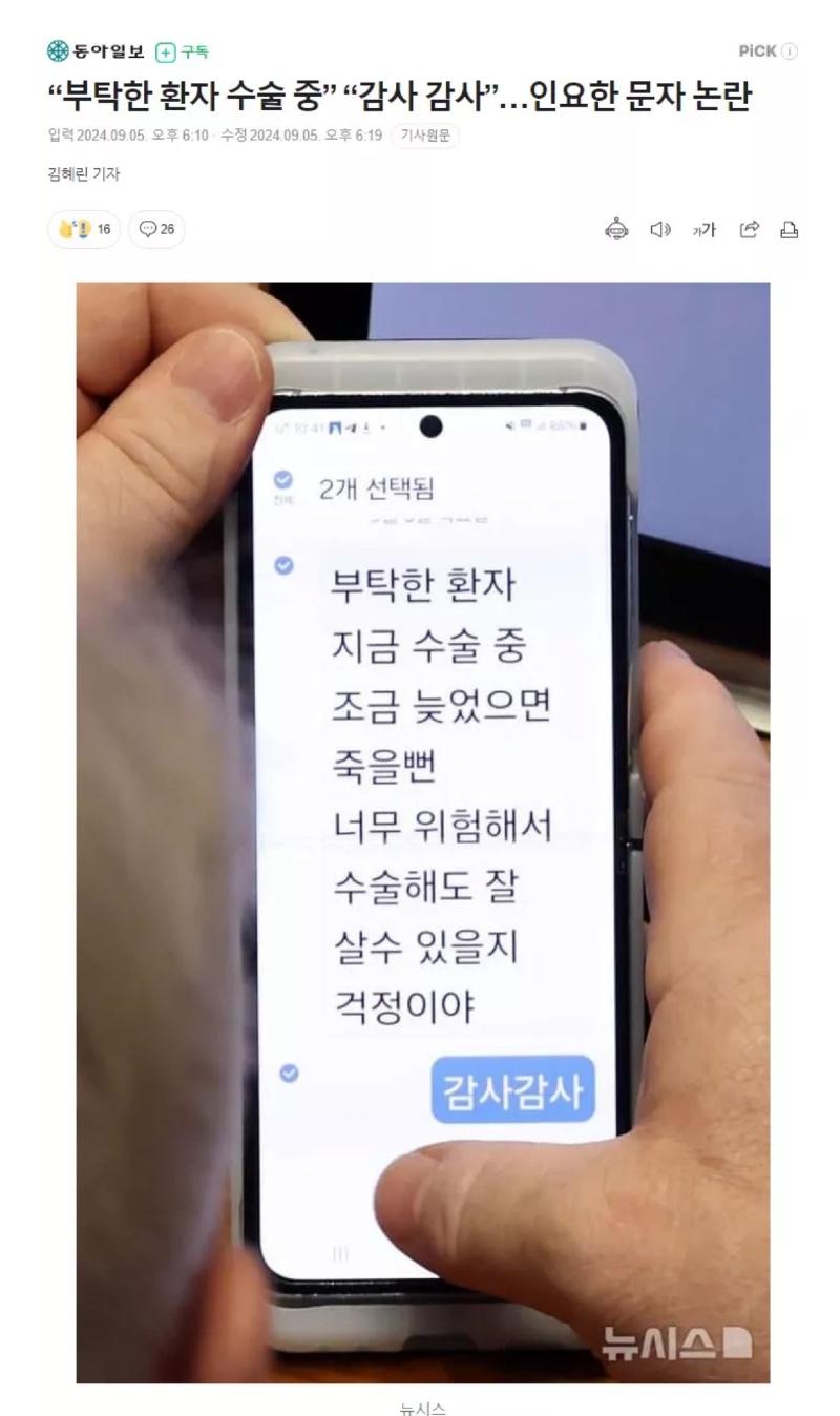 돈 없고 빽 없으면 응급실 이용 못하는 세상! 부탁한 환자, 지금 수술 중..! 조금 늦었으면 죽을 뻔했다고?! 너무 위험해서 수술해도 잘 살 수 있을지 걱정이야. 감사 감사.. 뉴시스와 서울신문이 보도한 이 사연은 정말 충격적이다! 응급실에서 수술의사가 없어서 뺑뺑이 도는 70대 사망 사건도 발생했다! 현대자동차는 9월 파격 프로모션 펼치면서 혜택을 준다며, 응급실 대란이 현실화되고 있다! 많은 사람들이 눈물을 흘렸다고 한다.