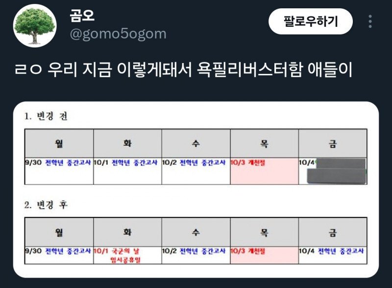 임시공휴일 크리 터진 학교현장