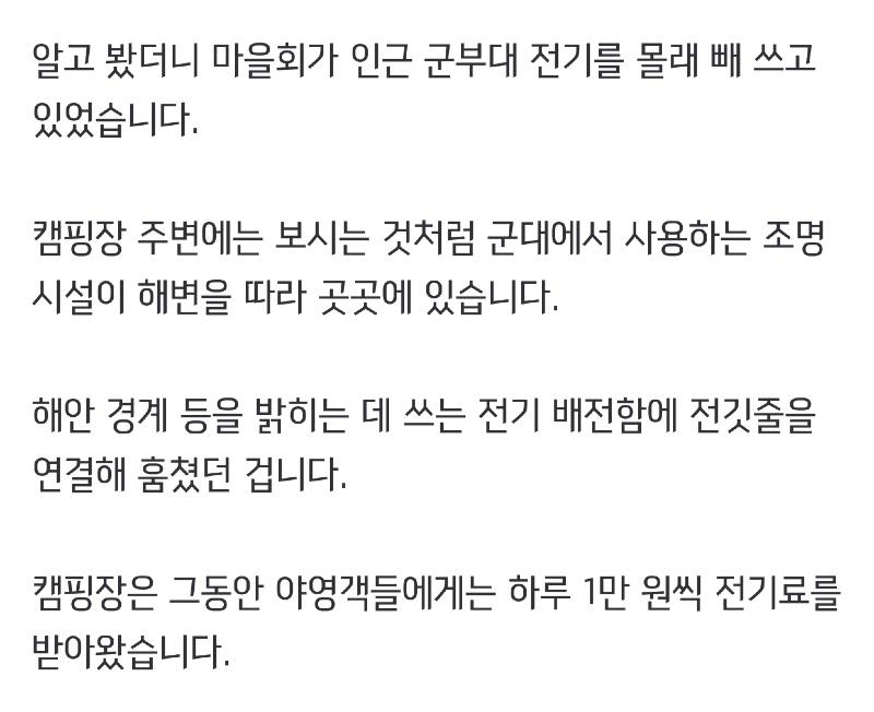 군부대 전기 빼돌린 캠핑장