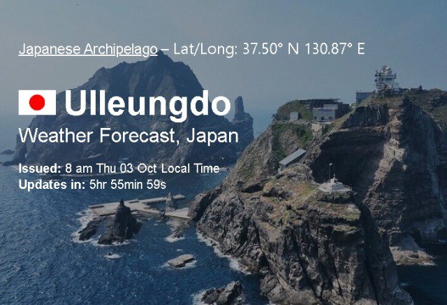 뉴시스에 따르면, 세계 곳곳의 산악 일기 예보를 제공하는 사이트 'mountain-forecast.com'가 'Ulleungdo'(울릉도)를 일본 영토로 소개하고 있다.