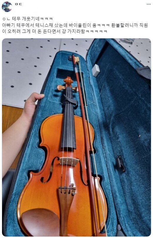 테무에서 놀라운 주문 사고가 발생했습니다! 한 아빠는 테니스채를 구매했지만, 집에 도착한 것은 믿을 수 없는 바이올린이었습니다! 웃음을 자아내는 이 상황은 직원이 환불을 요청했을 때 더욱 황당해졌는데요, 직원은 오히려 환불은 더 돈이 든다며 고객에게 바이올린을 가지라고 했다고 합니다.