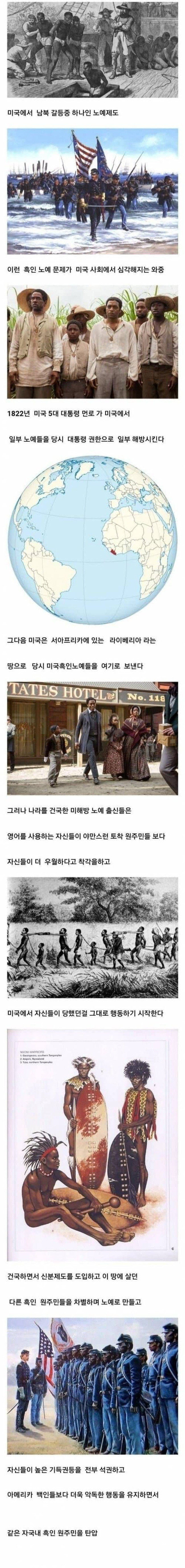 하지만 이들이 안착한 후, 불행한 현실이 드러났습니다. 미국에서 자유를 찾은 흑인들은 현지의 원주민들과의 관계에서 자신들이 우월하다고 착각하게 되었고, 그 결과 그들은 원주민들을 차별하며 그들 위에 군림하기 시작했습니다. 신분제도를 도입하고 그 땅의 토착민들을 억압하는 등, 과거 자신들이 겪었던 고통을 잊은 채 더 악랄한 존재로 변모한 것입니다.