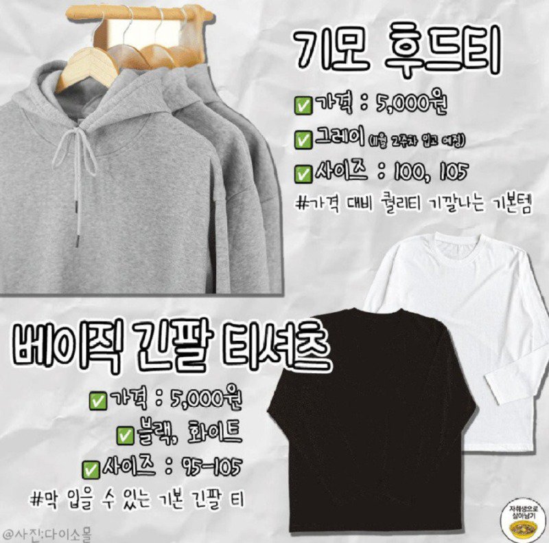 더욱이, 기모 후드티와 기본 긴팔 티셔츠 역시 같은 가격인 5,000원에 올겨울 필수 아이템으로 주목받고 있다. 블랙, 화이트 컬러에서 선택할 수 있는 긴팔 티셔츠는 자취생들이 간편하게 활용할 수 있는 기본템으로 평가받고 있다.