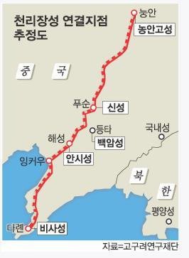 고구려 천리장성의 '선'이 일치.