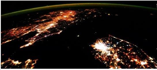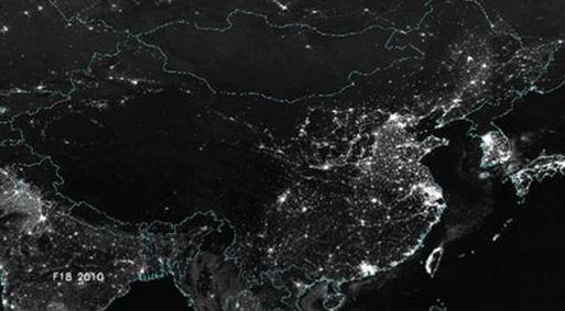 인공위성에서 찍은 한국과 중국의 야경