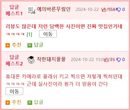 특히 '후라이드(반)양념(반)'과 '후라이드(반)간장(반)' 메뉴도 14,000원에 팔리고 있는데, 각각 리뷰 수가 36개와 13개로 꽤 높은 편이다. 이 치킨집에 대한 평가는 대체로 긍정적이지만, 여기저기에서 '담백한' 사진이 등장하자 일부 고객들은 의문을 제기하기 시작했다. 어떤 이들은 "이 정도면 진짜 맛집이 확실하다"고 주장하는 반면, 또 다른 고객은 "휴대폰 카메라로 플래쉬를 켜고 찍으면 저렇게 찍힐 수 있다"며 조심스러운 반응을 보였다.