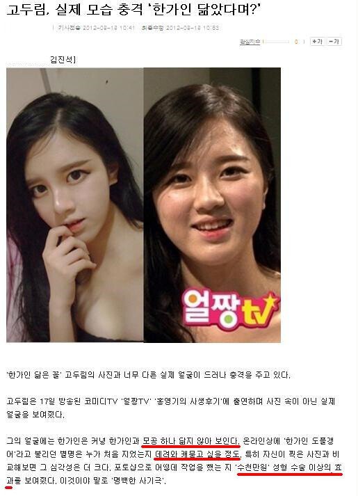 고두림, 한가인 닮은꼴로 화려한 데뷔! 그러나 실제 모습은 충격 그 자체였다. 지난 17일, 고두림은 코미디TV 프로그램 '얼짱TV'에 출연해 자신의 모습을 공개했는데, 예상과는 전혀 다른 현실이 펼쳐졌다. 방송에서는 그가 전과 비교해 '한가인'의 모습은커녕, 그와의 유사성조차 전혀 찾아볼 수 없다는 점이 드러났다.