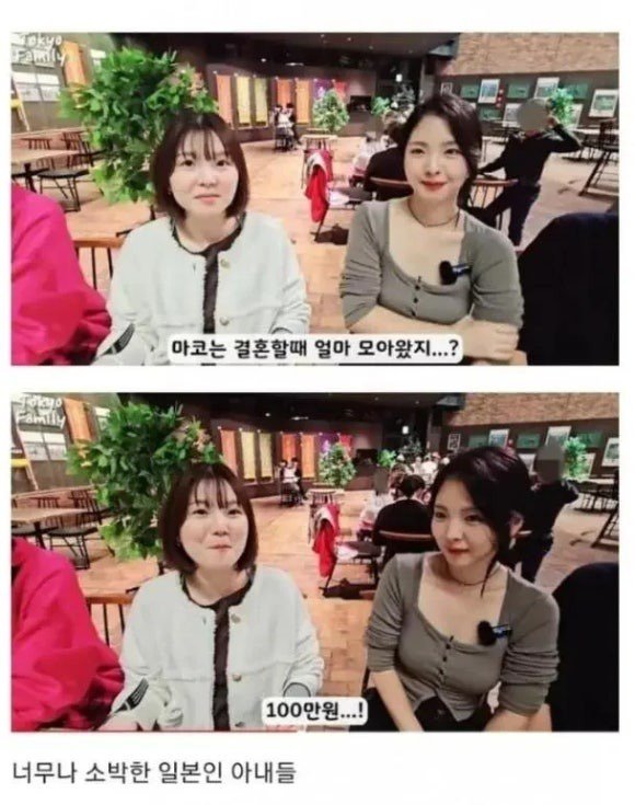 더욱 충격적인 것은, 일본 아내 마코가 결혼 때 모은 돈이 100만원에 불과하다는 점이다! 전혀 예상치 못한 소박한 현실에 많은 이들은 놀라움을 금치 못했다. 그들은 월급이 들어올 때마다 냉장고, 세탁기, 그리고 마지막으로 TV를 구입하는 데 소중한 돈을 썼는데, 이렇게 소박한 소비 생활이 일본 결혼 문화의 일면이라는 사실이 밝혀졌다.