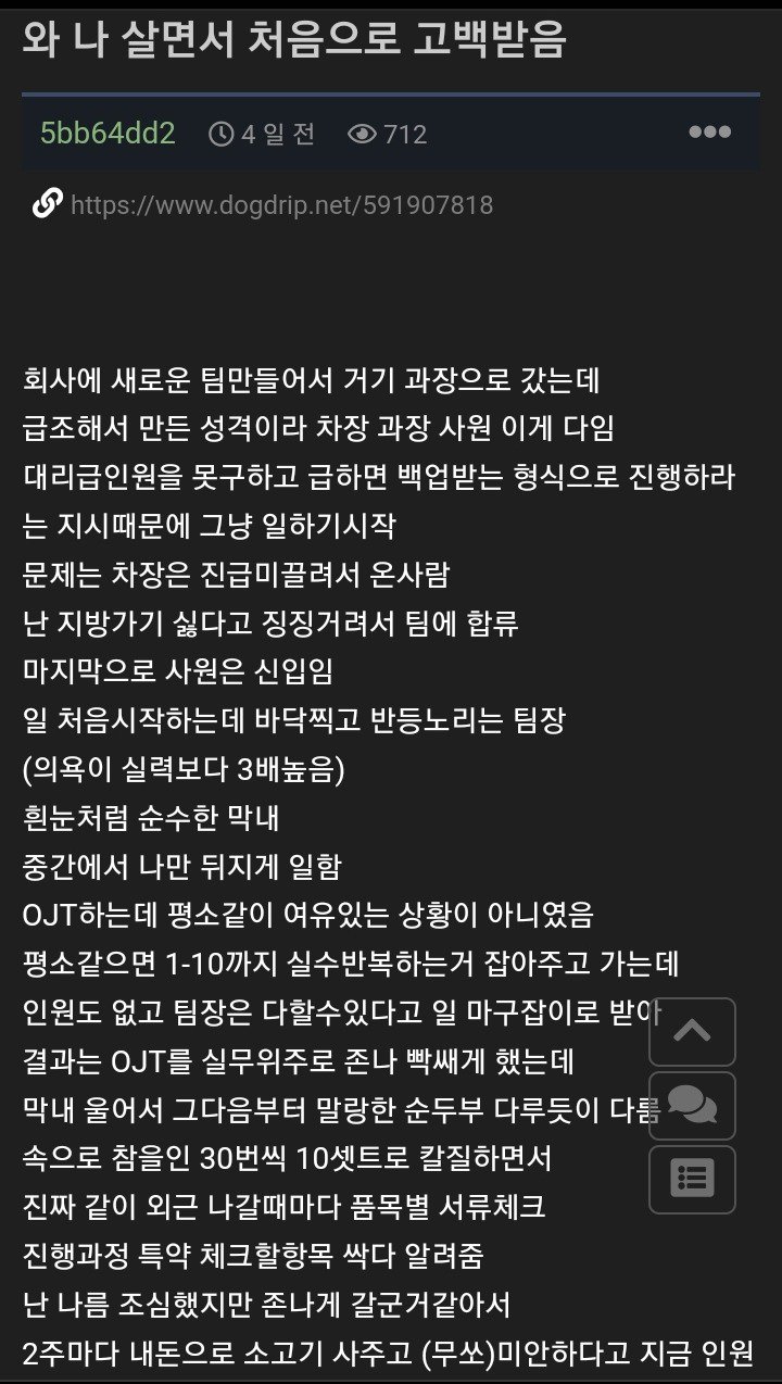 상황이 이렇다 보니 유부남은 자신의 스트레스를 해소하기 위해 막내에게 소고기를 사주며 미안함을 전하기로 했다. 하지만 그가 오히려 막내를 갈구고 있다는 느낌을 지울 수 없었다는 자아비판의 목소리도 있었다. 그렇게 7개월의 시간이 지나고, 막내의 능력은 천천히 발전하기 시작했지만 여전히 불안감이 가득했다. 대형 사고를 치지 않을 거라는 믿음만이 조금씩 생겨났을 뿐이다.