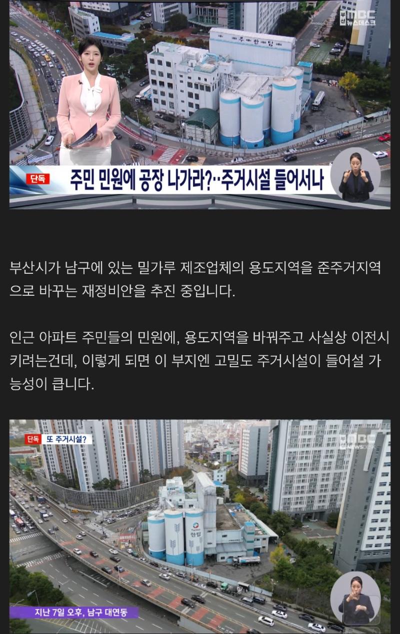 밀가루 제조업체 '한탑'은 60여 년간 이 지역에서 운영되어 온 오래된 공장으로, 최근 공장 분진과 소음으로 인한 주민들의 민원이 끊이지 않았습니다. 주민들은 공장 이전을 요구하며, 결국 부산시는 이 같은 민원을 해결하기 위해 반격에 나선 것이라는 의견이 제기되고 있습니다.